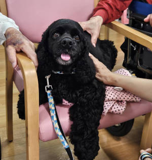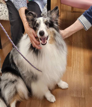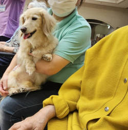 2025年2月23日はなみずきへ訪問しました。犬8頭、人12名での訪問になりました。ご利用者様と犬たちが穏やかに触れ合い、ゆったりとした楽しい時間が持て
