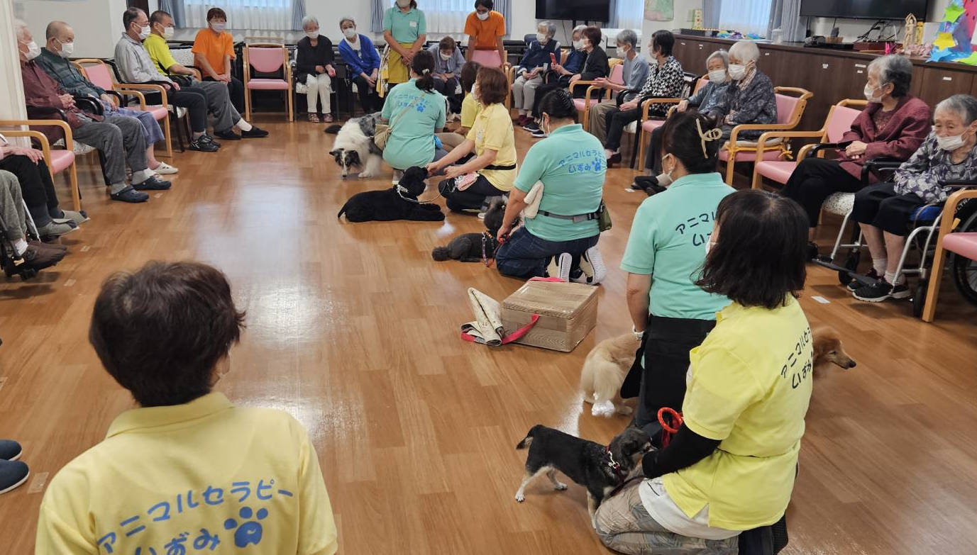 ワンちゃん9頭、人11人の訪問となりました。26人のご利用者様と楽しいひと時をワンちゃんたちと過ごしました。